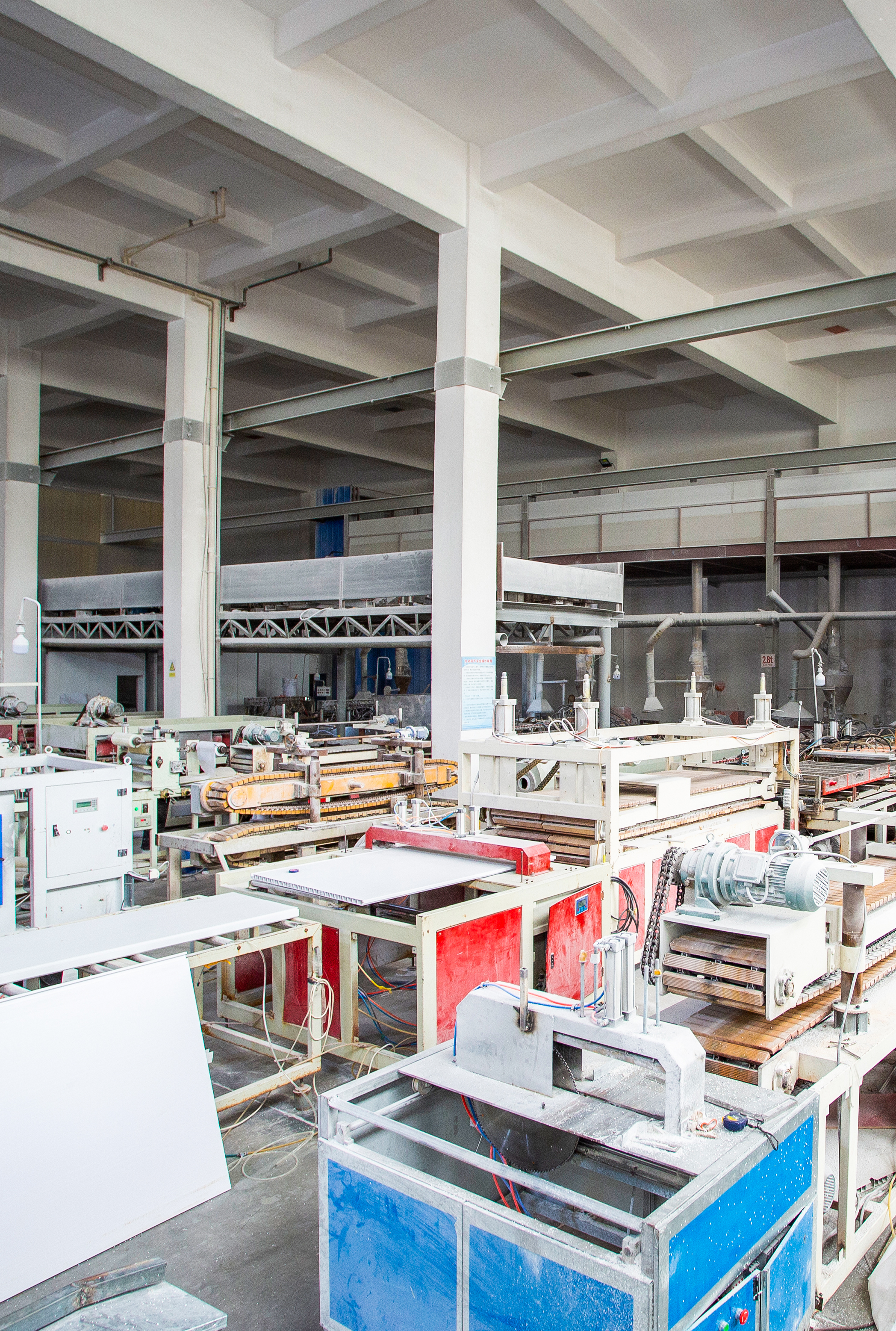 Officina area 6000 metrorum quadratorum tegit et instructa 32 lineis ex- pulsionis plene latae (inclusa 10 extruderorum 65, 2 extruderorum 80 et 20 extrudorum 51). (including 10 65 extruders, 2 80 extruders and 20 51 extruders), quae occurrere efficienti continua productioni PVC, WPC et aliarum materiarum. Coniunctio multiplicium exemplorum fretus, operationem integram cognoscit a mixtione, extrudendo, refrigerando et formando ad secandum.